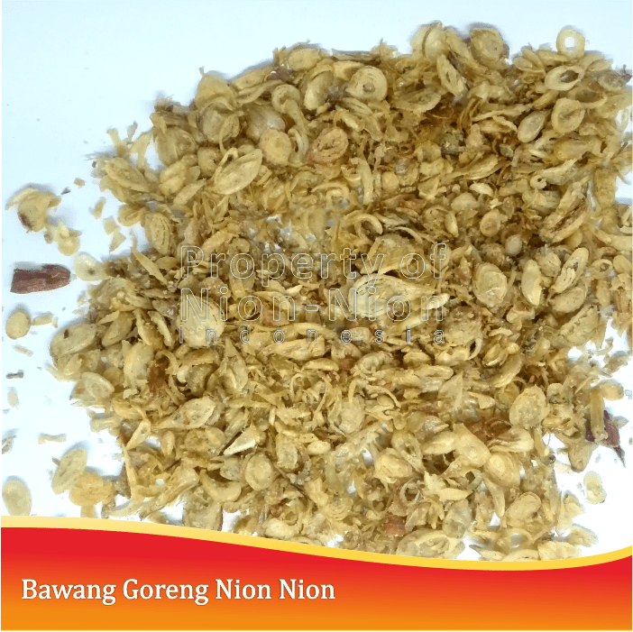 Bawang goreng nion nion merupakan bawang goreng garing dan juga salah satu bahan pelengkap makanan yang sangat banyak peminatnya . Hampir semua masakan akan terasa lebih nikmat jika dilengkapi dengan bawang goreng ini. Ada berbagai macam pilihan dan rasa yang super pedas karena kami menyediakan semua jenis bawang goreng, mulai dari potongan tipis, sedang dan tebal. Dan bawang goreng nion nion, berhasil memproduksi bawang dengan resep rahasia sehingga memberikan cita rasa yang khas untuk para penikmatnya.